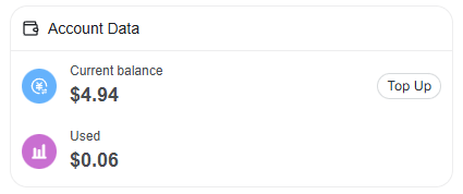 If your balance runs low, you can add credits using the Top Up action. All values update automatically as usage occurs.