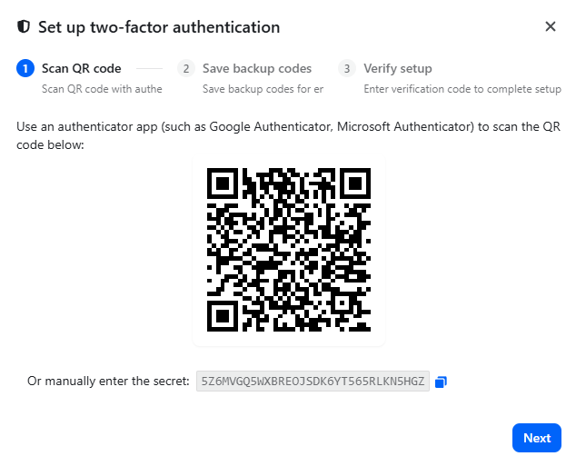 - A manual secret key (for manual entry)